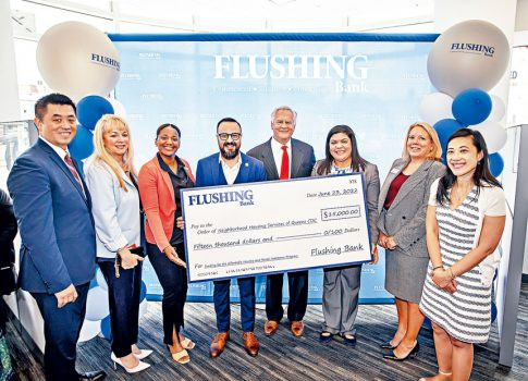 法拉盛銀行總裁兼首席執行官 John R. Buran向皇后區社區住房服務送了$15,000贈款支票。