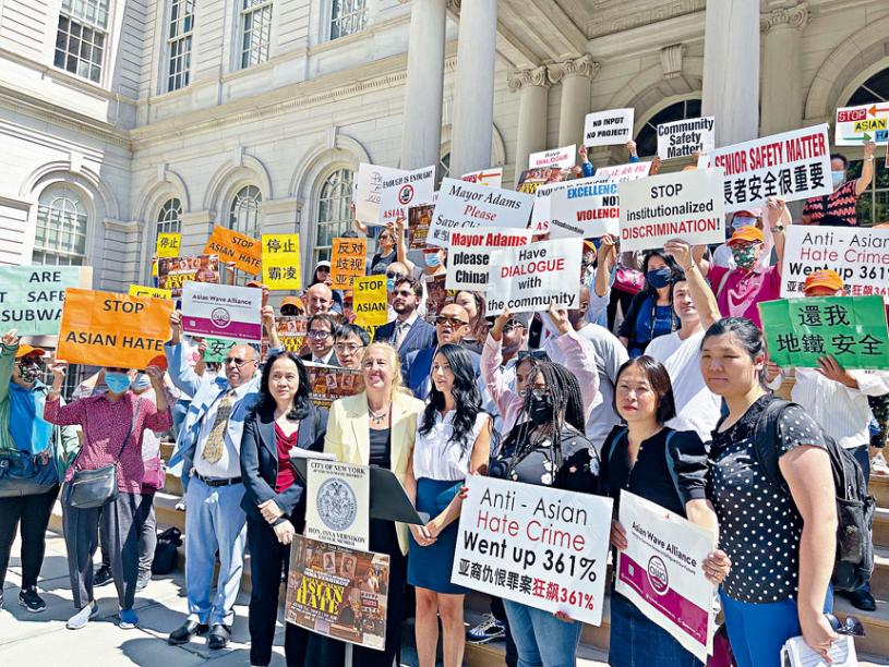2年多的新冠疫情讓亞裔社區因仇恨犯罪又一次處於水深火熱之中。為敦促立法修繕,確保亞裔社區的安全,在羊頭灣市議員薇妮科夫(Inna Vernikov)的發起下,近百社區民眾與民選官員24日在市政廳門前舉行「反對亞裔仇恨」抗議示威活動。薇妮科夫與華康會會長陳麗娜(Lina Chen)亦在集會上宣布,羊頭灣將組建自己的亞裔社區守望巡邏隊(Asian Community Watch),以社區力量護己周全。