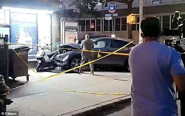 紐約布碌崙發生驚人交通事故,1輛私家車為了逃避警車追趕,失控撞向巴士站再駛上人行路,導致5名途人1死4傷。