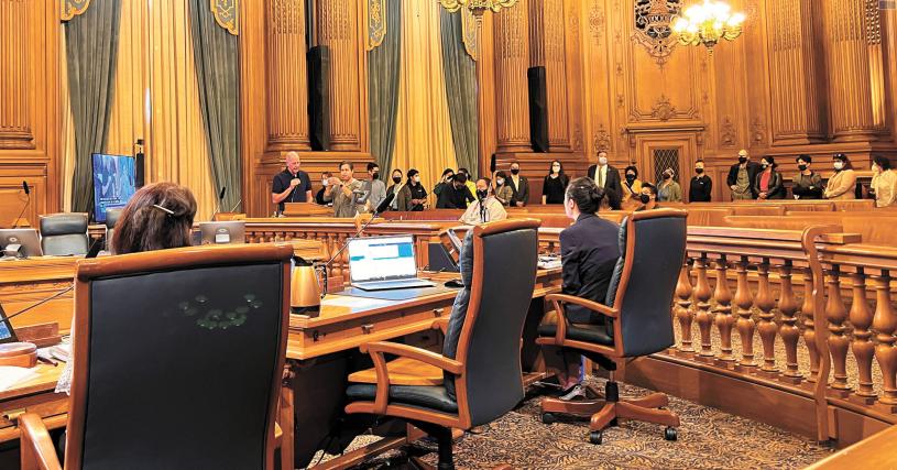 三藩市市參事會預算及撥款委員會24日召開公聽會,討論新財年預算案。大批組織、團體和民眾在市府前集會並出席會議發言。近百名「正義預算聯盟」組織的成員聚集在市府,要求三藩市通過公平預算,照顧整個城市及滿足不同社區的需求。