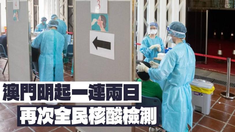 因應疫情嚴峻,澳門當局將會於明日至周二(27至28日)開展新一輪全民核酸檢測。
