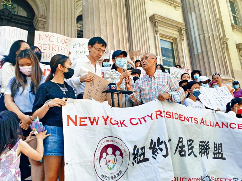 居民聯盟負責人臧東慧、紐約同院會創會會長陳慧華等社區領袖在集會上說,今年因為抽籤錄取,全市有幾千名學生沒有被任何一個人志願錄取,最後被教育局隨便分配到自己聽都沒聽過的學校,布碌崙的學生被分到曼哈頓的學校,或者皇后區的學生被分到史丹頓島的學校、上學路上要花兩個小時的情況並不稀奇。他們稱亞當斯政府繼續了白思豪政府的錯誤教育政策,現在離開學還有兩個月的時間,教育局應當糾正錯誤,重新進行高中錄取。
