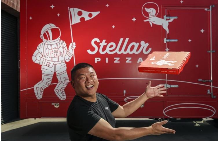 根據《洛杉磯時報》、《CBSLA》報道,來自哈仙達崗(Hacienda Heights)台裔家庭的Benson Tsai說披薩是小時候家中唯一允許吃的美式食物,在SpaceX工作五年後開始有了自己創業的想法,2019年Benson Tsai和另外兩位同事離職共同創辦「恆星披薩(Stellar Pizza)」,並延攬其他 23 位SpaceX前員工加入團隊,開發一台可以安裝在餐車上的全自動化披薩機,讓披薩從麵團壓成餅皮、撒上餡料和醬汁、烘烤出爐等所有製程全都由餐車車廂上的各種機器手臂依序處理,5分鐘就會出爐一個熱騰騰披薩,若餅皮事先處理好更可以將製程縮短到45秒。