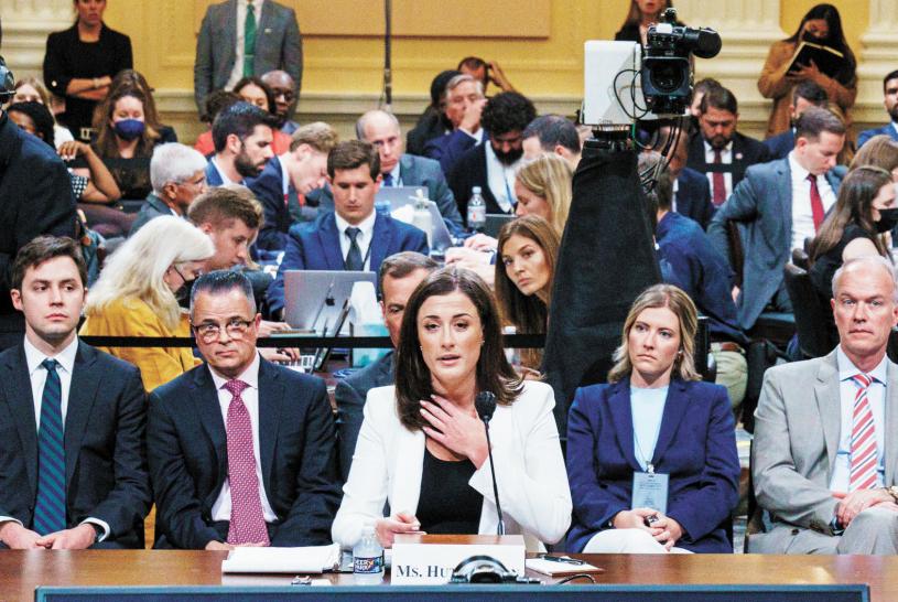 美國國會騷亂調查委員會28日舉行臨時加開的聽證會,期間披露許多爆炸性重要證據。白宮前助理哈欽森(Cassidy Hutchinson)表示,去年1月6日國會騷亂當天,時任總統特朗普明知部分示威者持有槍支等各類武器,但仍讓人群前往國會山莊,自己也有意趕往現場,甚至不惜為此襲擊特勤局保鑣,並揚言示威者「不是衝著我來的」。分析形容,假如這些證詞屬實,可以證明特朗普事前至少知道部分安排,也需為最終場面失控承擔相當責任。