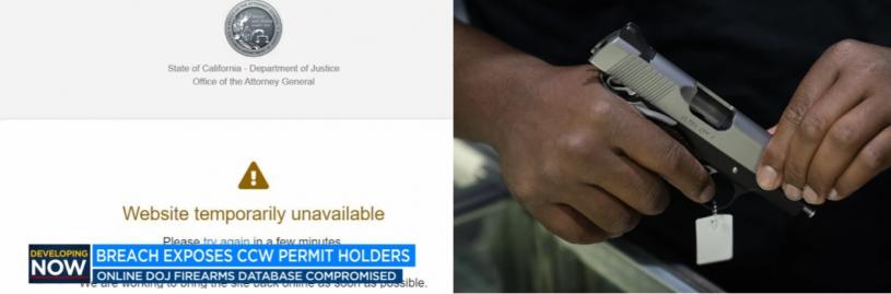 根據《洛杉磯時報》報道,加州隱密武器許可證(concealed-carry permit)的持有民眾個人資訊恐已在網站上外流,負責機構得知後已立即關閉網站進行修復。