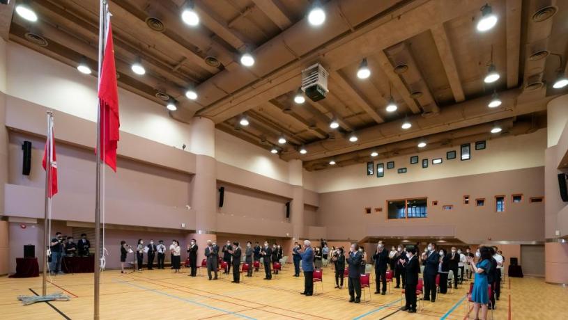 香港教育大學在大埔校園舉行升旗儀式。教大校董會成員、管理層、教職員、學生和校友約100人出席。教大特別成立了一支學生升旗隊,成員大部分均主修教育。
