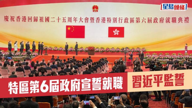 香港特別行政區第6屆政府就職典禮今早在灣仔會議展覽中心舉行,新任行政長官李家超在中共中央總書記、國家主席、中央軍委主席習近平監誓下宣誓就任。