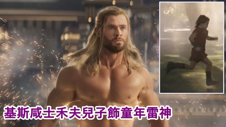 漫威新作《雷神奇俠4︰愛與雷霆》將於7月6日在港上映,近日「雷神」基斯咸士禾夫(Chris Hemsworth)受訪,被問到兒子有份演出感覺如何?基斯表示8歲孖仔Tristan、Sasha及10歲女兒India都有份客串,囡囡演出「Love」一角。預告中一開始見到兒時的雷神在森林奔跑,該童星就是由基斯的兒子飾演,他表示︰「感覺很有型,他們好想參與這部電影。這是一次性的有趣家庭經歷,我不想他們現在是童星和演員,只是我們一次特別的經驗。」
