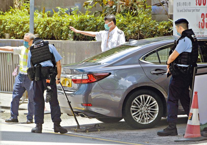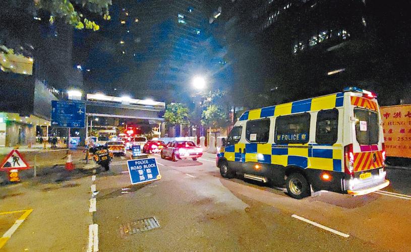 金紫荊廣場、君悅酒店一帶亦擺放大量水馬,未經許可車輛不准駛入;分域碼頭亦有水馬陣,警員逐一檢查擬進入的車輛及查問司機。