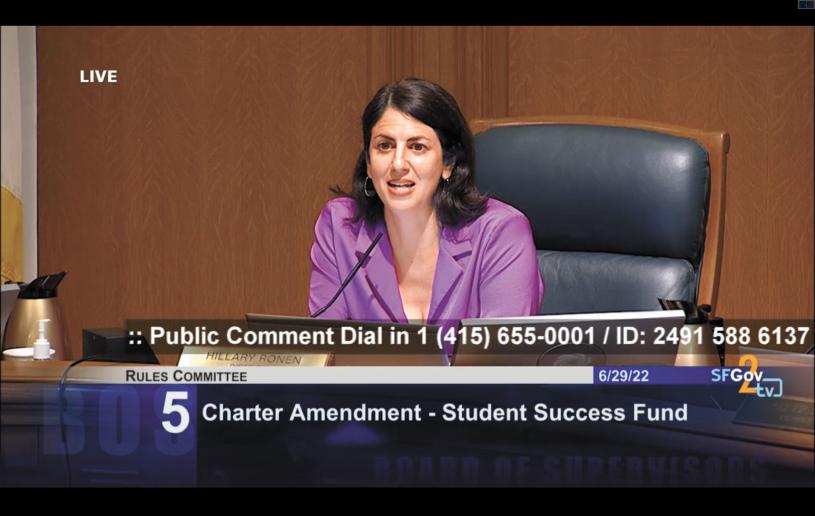 三藩市市參事會規則委員會29日召開公聽會,討論市參事盧凱莉提出的「學生成功基金」(Student Succeed Fund)公投提案。