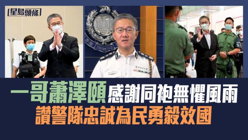 最後蕭澤頤感言,十分榮幸能與各位警員並肩作戰,讚揚大家在今次安保行動,用行動演繹出忠誠為民、無懼風雨、勇毅效國、不辱使命。他強調,攀過一山、再過一峰,會繼續與各位警員一同繼續努力,毋忘初心,在香港踏入由治及興的關鍵時刻,專業維護國家安全,守護市民生命財產。
