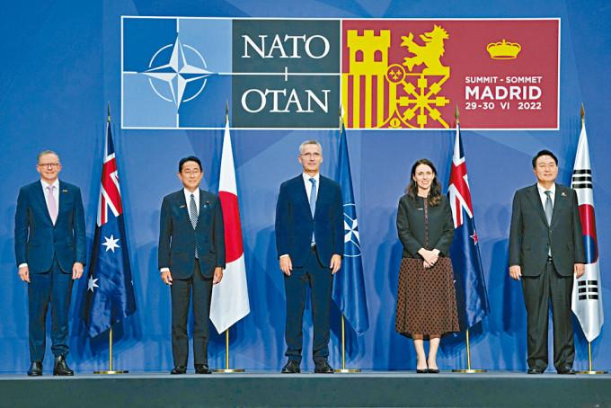 文件還聲稱,中國極力「顛覆奠基於法規的國際秩序」,並認為中國與俄羅斯深化的戰略夥伴關係,以及兩國削弱國際秩序的日增企圖,「與我們價值與利益相違」。此外,北約邀請非成員國日本、南韓、澳洲、紐西蘭四國出席會議,即可知北約把守備範圍,擴大至印太地區。日本首相岸田文雄周四在北約峰會上針對中國,表明在印太地區擴大與北約合作的想法。岸田呼籲國際社會應該團結表明,在東海及南海藉由武力片面改變現狀的嘗試「絕對不會成功」。他也宣示,將在五年內徹底強化日本防衞能力、確保增列一定數額防衞經費的「決心」。