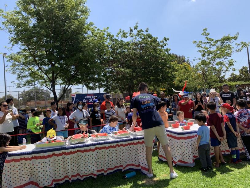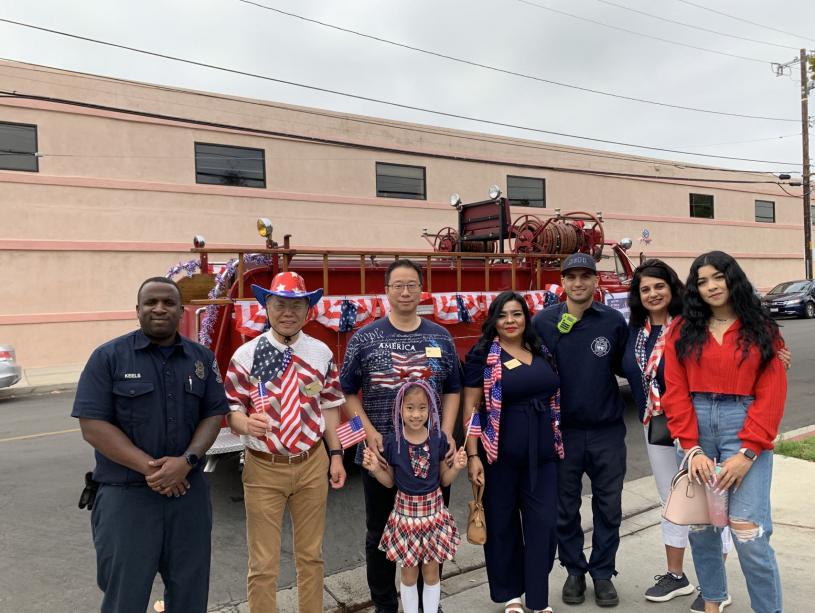 7月4日國慶節,華人社區聖蓋博市的傳統節目-國慶遊行和親子活動,如期在極具歷史代表性的使命街區(Mission District)舉行。當地政府機構、民選官員、社團等都受邀出席,搭乘各式車隊一路行進。這項遊行和親子活動已經成為聖蓋博市慶祝國慶的重頭戲,來自當地和周邊的居民們都早早的趕到場地,沿途觀看。民眾們揮舞著國旗,跟著隊伍前進,一同歡慶這個特殊的日子。