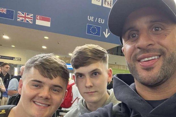 英超球星一向喜歡乘搭私人飛機外遊,用錢買時間和私穩。然而曼城守將基爾獲加近日與妻子出外度假時,租不到私人飛機,改為在曼徹斯特機場乘搭民航機,兩口子沒有因為搭不到私人飛機而影響心情,更親民地在候機室內與球迷自拍。
