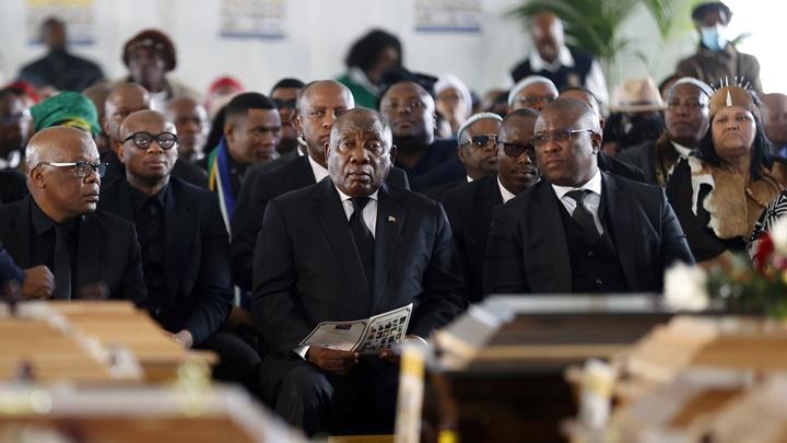 拉馬福薩在悼詞中,提到他正面臨許多挑戰,包括南非延長停電、廣泛的腐敗指控。在合唱團的悼歌聲伴隨下,19副棺木被送進現場的大帳篷。喪禮組織者表示,為尊重家屬意願,現場擺放的都是空棺,另有2個家庭選擇舉辦私人喪禮。