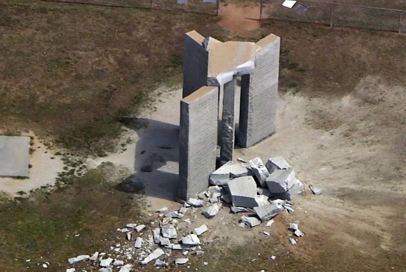 綜合美聯社及WSBTV.com報道,喬州調查局表示,不明身份的人在6日凌晨4時許引爆炸藥,摧毀了石碑大部分結構,其中1塊石板更被炸成碎片。從閉路電視片段可見,當時1輛銀色私家車駛離現場,當局隨後出於安全原因,已將整座紀念碑拆除。