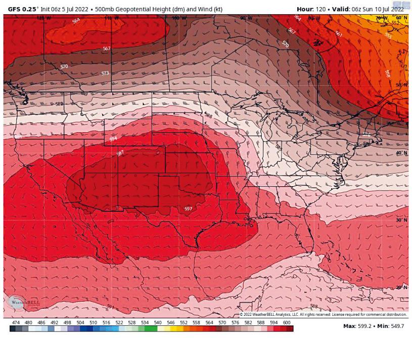 至於西南部則出現「熱蓋現象」(heat dome),德州將繼續受到異常炎熱天氣影響,鳳凰城與拉斯維加斯也在6月經歷了破紀錄的大範圍高溫。