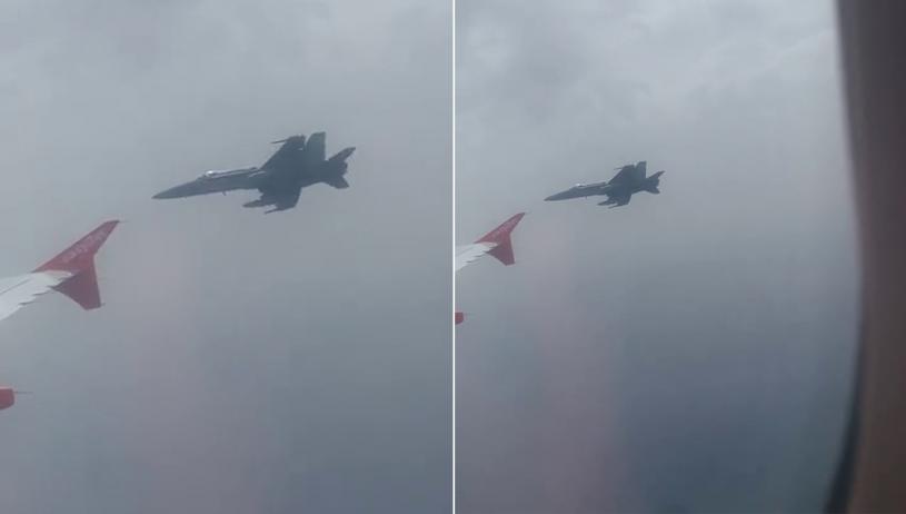 從社交平台流傳的影片可見,西班牙一架F18戰機靠近客機的機翼,並搖擺機身,示意客機跟隨其飛行。有乘客擔憂發問:「為甚麼戰機會這樣,是否只不過在賣弄?」機上的乘客都被嚇了一跳,結果客機最終降落梅諾卡機場被帶到保安區域,旅客落機逐一被搜查行李,擾攘了近4個小時。當局指原來當日機上一名18歲英國青年於社交網貼文稱,客機有炸彈。他事後被警方拘捕,被指控擾亂公眾秩序。