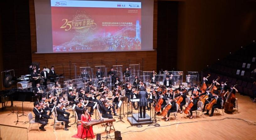 昨晚舉行的香港演藝學院呈獻:香港特別行政區成立二十五周年音樂會由演藝交響樂團演奏三首風格迥異的管弦樂曲目,包括受香港獨有的大排檔文化啟發的得獎作品《大排檔》、古箏協奏曲《如是》,及與演藝合唱團共同演出的貝多芬《C小調合唱幻想曲》,作品80。音樂會更邀得粵港澳大灣區內三所機構,包括星海音樂學院、澳門青年交響樂團協會及深圳藝術學校,以錄播形式帶來精彩演出,客席指揮包括音樂家廖國敏及林大葉。音樂會稍後可於網上平台重溫。