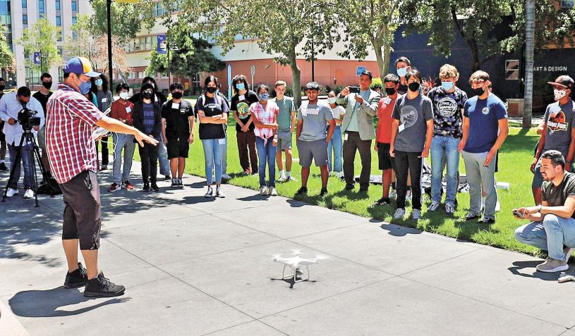 聖荷西州大(SJSU)峰田夏季交通學院(Mineta Summer Transportation Institute)18日向35位學生展示如何用無人機來掃描地表,利用先進的科技,協助解決日常交通上所遇到的問題。州大峰田交通學院主任菲貝克(Karen Philbrick)表示,學生在三個星期的課程中,了解交通這個行業,因為每個人都要依靠交通來到達各地。