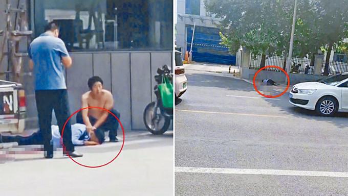 事發前日清晨十時三十分許,現場是石家莊市橋東區紅星街與頤宏路交叉口北側、距離石家莊監獄門口約一百米處。網上流傳現場的視頻顯示,一名穿警服人員倒地,身邊有血迹流出;另一名穿警服人員也趴在地上(見圖),頸部有血流出,有人在旁邊施救。