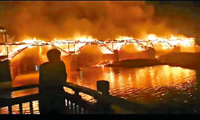 (星島日報報道)前晚九時許,位於福建寧德屏南縣的中國現存最長木拱古廊橋——萬安橋失火,火光熊熊,古橋體燒得只剩骨架,基本坍塌,無人員傷亡。當地村民慨歎恐成「遺夢」,也有評論稱「令人痛心」。有傳萬安橋的消防設施被破壞,寧德官方通告稱,火災原因正在調查當中,公安已經介入。事件引起關注,多家媒體質疑古廊橋文化遺產是否受到有效保護。