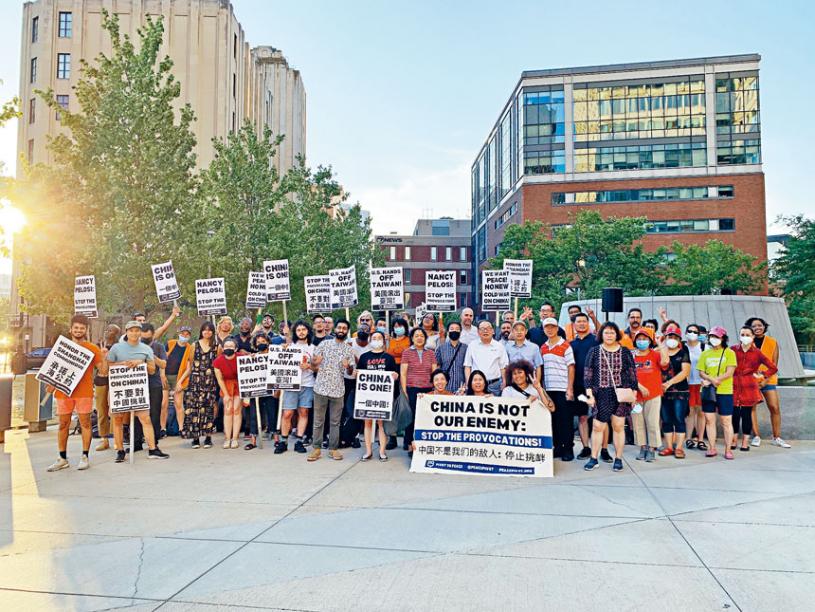 8日下午6點至晚上8點,在波士頓肯尼迪(JFK)聯邦大廈面前廣場,一場由重返和平(Pivot to Peace)草根社團組織發起並聯合ANSWER Coalition 、Boston Liberation和大波士頓中國和平統一促進會(New England Alliance for Peaceful Unification of China)等多個組織參與共同舉辦的主題為「中國不是我們的敵人:停止挑釁」集會示威活動,吸引了一百多名大波士頓地區當地社區不同族裔成員積極參與。集會示威現場上,廣大社區成員對美國眾議院議長普洛西(Nancy Pelosi)對中國台灣的正式訪問感到憤怒,並要求議長普洛西辭職,停止煽動美國與中國的潛在戰爭,轉而關注美國人民面臨的真正問題。