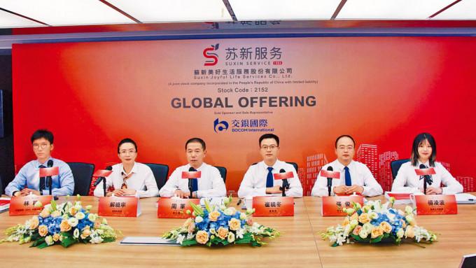 (星島日報報道)有國資背景的物管股蘇新美好生活服務(2152)今日起公開招股,招股價介乎8.6至9.6元,一手500股,入場費4848.37元,8月16日截止認購,預計8月24日掛牌;交銀國際為獨家保薦人。蘇新服務非執行董事張俊表示,自「三條紅」政策提出以來,同系的蘇州新區高新技術獲得外部融資的能力並未受到重大不利影響,預期不會對蘇州高新或蘇新服務的業務營運及財務表現產生任何重大及長期影響。