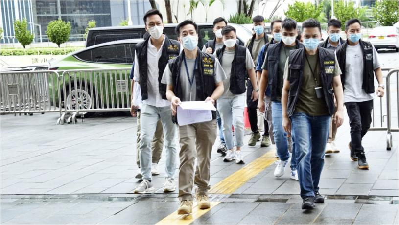 鍾雅倫(前)與部分探員今早6時左右暫時離開紅館。