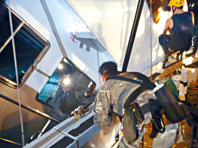 在船艙內搜尋之際,劉Sir說突然發現氧氣樽停止供氣,當刻十分緊張,有一種「生死時刻」的感覺,幸平日飛虎隊訓練有素,未有因而「亂陣腳」,隨即冷靜了解斷氣原因,終發現是氧氣樽的開關掣與水中雜物摩擦,令其關閉,重新開啟後馬上可以供氣,可謂有驚無險。
