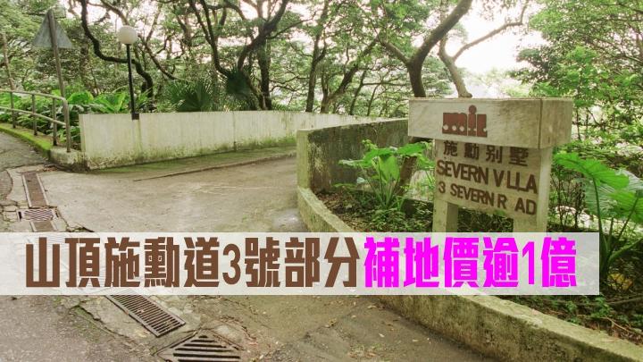 據地政總署資料顯示,上月僅有零星補地價項目,最矚目為山頂施勳道3號(鄉郊建屋地段第155號及增批部分),目前屬住宅 (丙類)用途,上月以1.1503億就增批部分完成補地價程序。