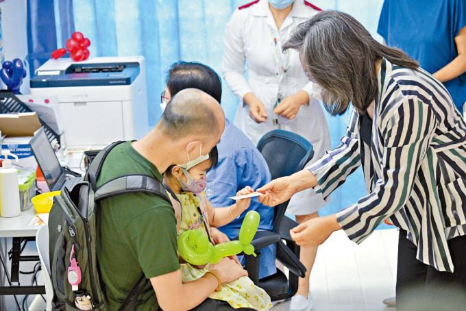 公務員事務局局長楊何蓓茵昨日在視察兒童醫院的接種中心後表示,再有兒童確診後出現重症,需要接受深切治療,她感到難過和傷心,目前已有超過三千名半歲至三歲幼童打針,希望數字可以升得更快,呼籲家長不要遲疑,盡快帶子女打針。她又指,會調低到校接種計畫的人數門檻,由三十人減至十人,鼓勵人數較少的幼稚園或幼兒中心可以使用服務。