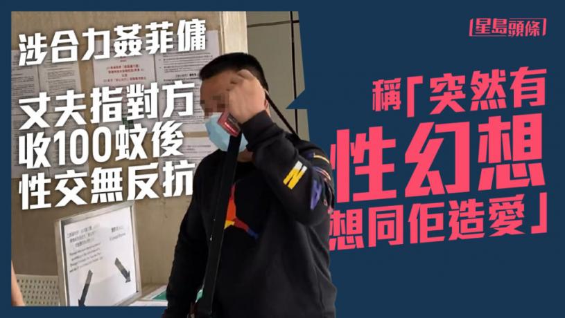 妻子四年前涉協助丈夫強姦菲傭,兩夫婦被控強姦及協助強姦等四罪受審。丈夫今出庭自辯時指案發當日在家炸豬大腸時,他與菲傭「眉來眼去」進行「神交」,「突然有性幻想,想同佢做愛」,菲傭收到訊息後進入主人房收下$100,二人隨即脫衣「男上女下」進行性交,他憶述菲傭當時「無拒絕、無反抗、無大叫、無話唔好」,形容菲傭性交時「好似少婦怕羞咁,含情脈脈」。