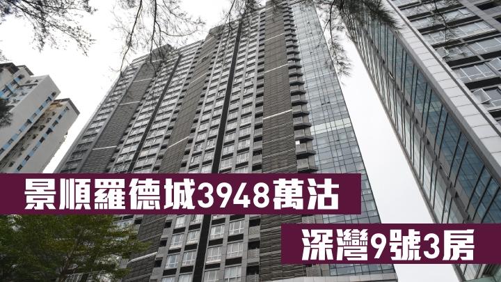 區內代理指,香港仔深灣9號8座極低層A室,面積1341方呎,3房1套間隔,坐向南方外望深灣遊艇會方向海景,是次以3948萬易手,呎價約29441元,屬市價成交。資料顯示,上址本月初以3948萬成交,而買家為羅德城(LO TAK SHING ANDREW)及鍾頴思(CHUNG WING SZE DEBORAH),於2012年以3006萬一手購入該單位,持貨10年帳面獲利942萬,物業升值約31%。