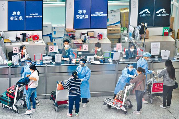 本報昨天引述有抵港香港居民表示,他們一家五口在上星期六晚上十一點從東京抵港,其後六歲女兒在機場進行檢測後呈陽性。他表示,原以為會被送到社區隔離設施進行隔離,惟職員竟指由於醫生及司機夜晚不工作,未能安排巴士接送他們。職員着他們待在放着一些簡單鋪的行李認領處,並表明其中一名家長可以留下陪孩子。在別無選擇的情況下,他們最後被逼在機場滯留十二小時。該名人士又指,確診者要與其他未確診的旅客待在同一地方及共有休息室,質疑有關安排不妥。