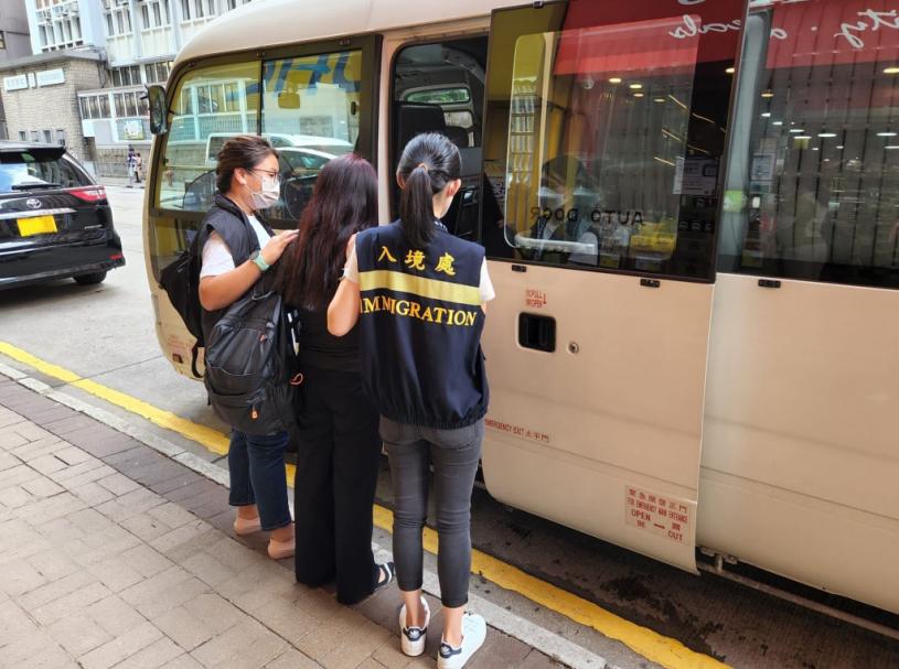 行動中,人員拘捕11人,年齡介乎25至45歲,包括1名本地女子、6名內地女子及4名非華裔女子。他們分別涉嫌為通緝人士、「未獲入境處處長授權而留在香港」、「違反逗留條件」、「行使他人身份證」及違反「預防及控制疫病(外國地區到港人士強制檢疫條例)規例」(第599E章)等被捕。