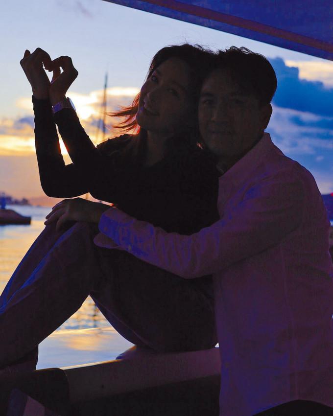 靚湯昨日突然在社交網上載拍拖睇日落的放閃照,並以心形表情符號示愛,相中她孖馬明一齊浪漫睇日落,更被男友從後抱抱,二人還合力做出「心心相印」手勢,照片雖然背光、拍得很暗,但甜蜜程度卻令網民齊嗌閃爆雙眼。