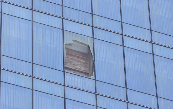 玻璃面板破裂位置發生在建築物的不同側面和樓層。法院發言人考克斯(Emily Cox)稱,自5月以來,十樓、12樓和14樓的窗戶突然破裂破損,所幸無人受傷。