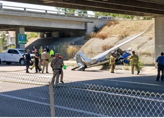 加州公路巡邏官特拉維斯·加羅(Travis Garrow)在現場表示,這架單引擎飛機在上午10點35分左右墜毀後,在高速公路立交橋上撞壞了一個混凝土欄杆,然後整個翻過了馬路,還撞上了路向東行駛的一輛休旅車的引擎蓋,撞擊對車輛造成了中度損壞,所幸沒有其他人受傷。