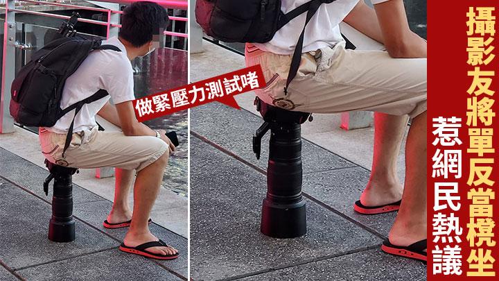 相機除了用來拍照外,原來還有另一用途。有網民日前經過尖沙嘴碼頭期間,見到一名攝影發燒友竟將估計逾十萬元的單鏡反光相機當成座椅坐在上面,令她非常詫異,直言「原來碌砲可以咁用」,帖文引來逾千名的網民讚好,其中更有人笑言「有錢就是任性」,該名攝影友只是為相機進行「壓力測試」。