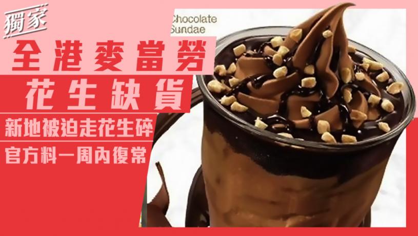 麥當勞發言人表示,新地類產品中的花生配料因船期緊張而暫時缺貨,預計將於一星期內恢復正常供應。已於餐廳櫃枱、甜品站、自助點餐機及麥當勞App等展示暫時缺貨提示,通知顧客。
