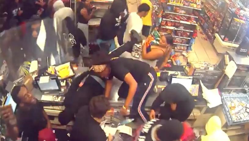 警方說,這宗案件發生在15日凌晨,當時,一大群人駕車佔領了洛杉磯市中心南部一處十字路口,不知甚麼原因,這群人闖進附近一家7-11便利店,肆意搶走店內的商品,情況持續約一小時,疑犯中更有人用商品掟店員。警方說,當時店員已躲起來,卻仍遭到至少一名疑犯的攻擊。