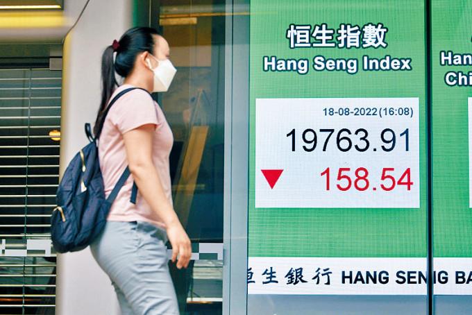 他續指,目前成交金額偏淡,美國下月議息結果及內地經濟數據出爐後,對大市才有指導性方向,預期短期恒指將在20000點徘徊,上落區間300至500點。