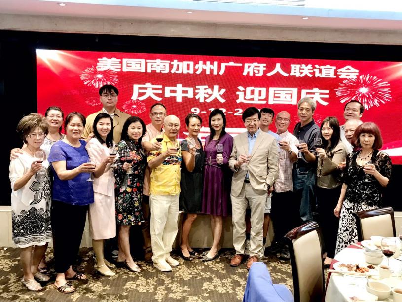 南加州廣府人聯誼會12日晚上舉行「慶中秋.迎國慶」晚宴,為本年度僑界慶祝中華人民共和國成立73週年僑界慶典活動揭開序幕。在慶祝人月兩團圓,迎接國慶,享受美食之餘,僑胞們心繫四川瀘定地震災民,會長陳燦培呼籲捐款賑濟災民,現場共籌得3,600美元。