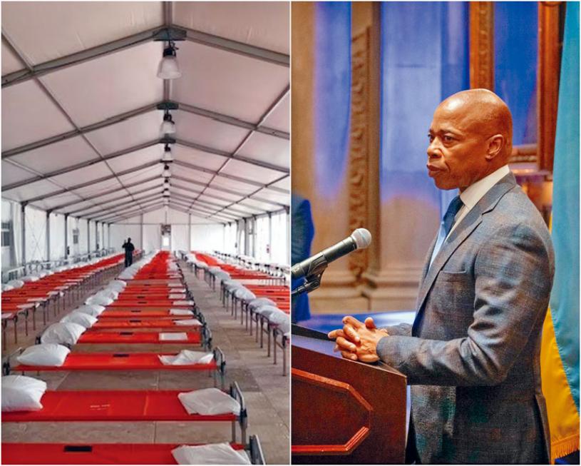 市長亞當斯22日提出解決1萬3000名移民湧入紐約市的收容方案:專門為他們開設2個類似難民營的戶外營地。
