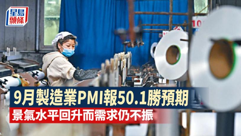 國家統計局公布,中國9月製造業採購經理指數(PMI)報50.1,勝預期,按月上升0.7個百分點,升至擴張區間。