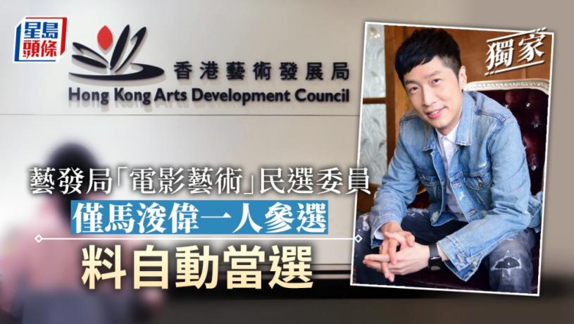 有「文藝界大掌櫃」之稱的香港藝術發展局,十席民選委員候選人提名前天(二十八日)結束。據消息透露,藝人、香港電台創作總監馬浚偉已經報名參選「電影藝術」界別。文藝界選委洪祖星向《星島》證實,馬浚偉是「電影藝術」界別唯一參選人,預料將自動當選,並稱馬近年參與電影導演工作,是適合的人選。據悉,由於參選人須獲文化及演藝界的一名選委提名,以保障國家安全,相信選舉結果將由建制派主導。