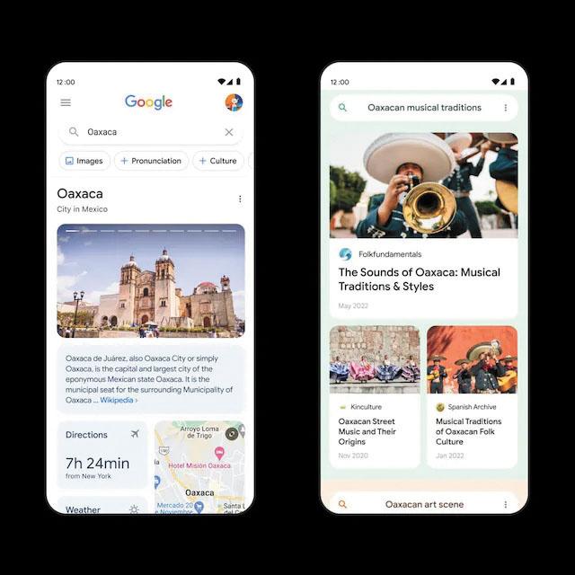 例如當人們搜尋旅遊目的地時,他們會看到谷歌稱為「視覺前進」的搜尋結果——類似Snapchat或Instagram限時動態般展現的有組織照片拼貼,還有旅遊網站上的地圖和圖片,點擊連結就能看到相關資料。