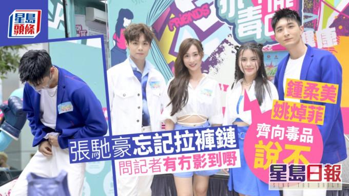 姚焯菲(Chantal)、鍾柔美(Yumi)、冼靖峰(Archie)及張馳豪(Aska)齊到荃灣,為宣揚禁毒訊息即場合唱全新禁毒主題曲《青春作風》,吸引了大批粉絲到場支持。演唱時Aska發現忘記拉褲鏈,急急將拉鍊拉上,事後他尷尬表示,這是自己第一次在台上發生尷尬事情,還反問記者剛剛有沒有影到甚麼東西?他表示沒有介懷並說會盡力做好活動。