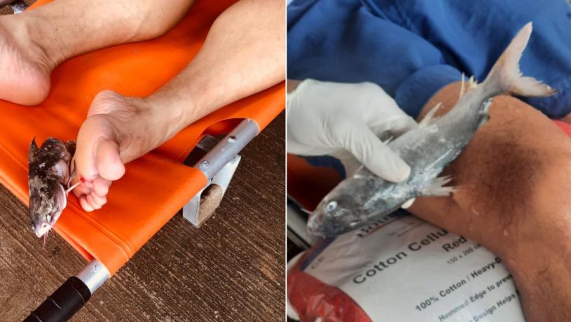 「奄釘」魚鰭插入泳客腳掌。港九拯溺員工會FB